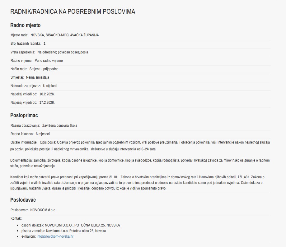 10.02.2026. - Javni natječaj za radno mjesto radnik/radnica - NA POGREBNIM POSLOVIMA